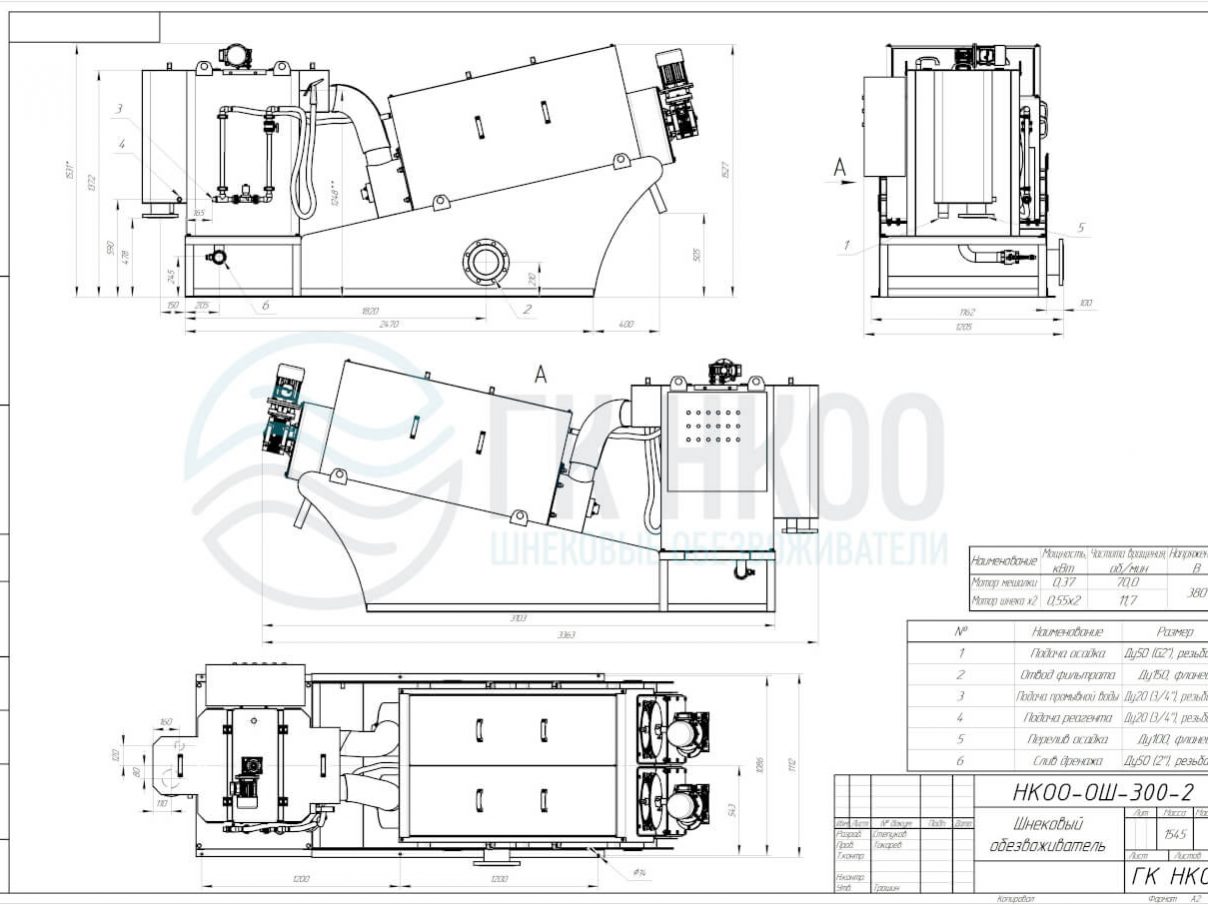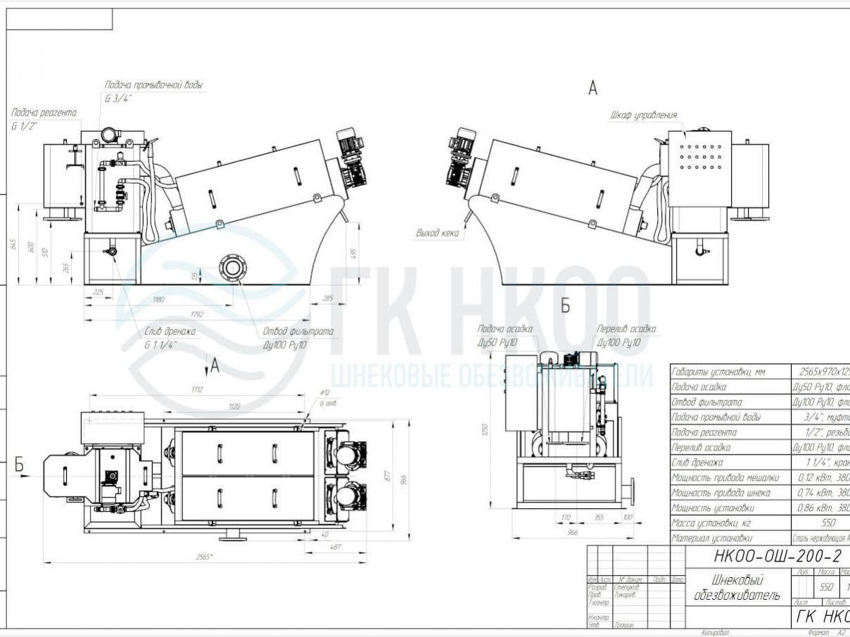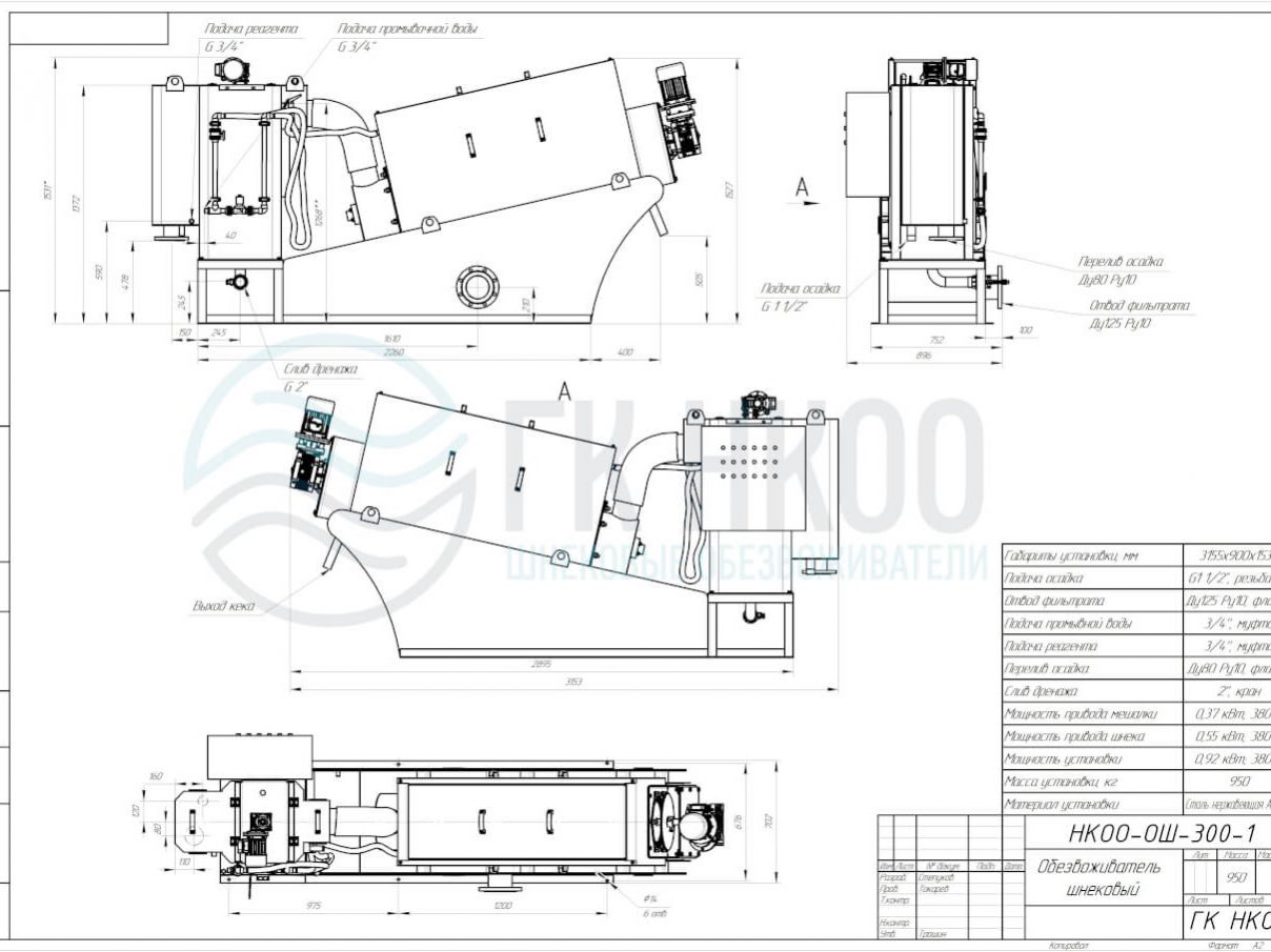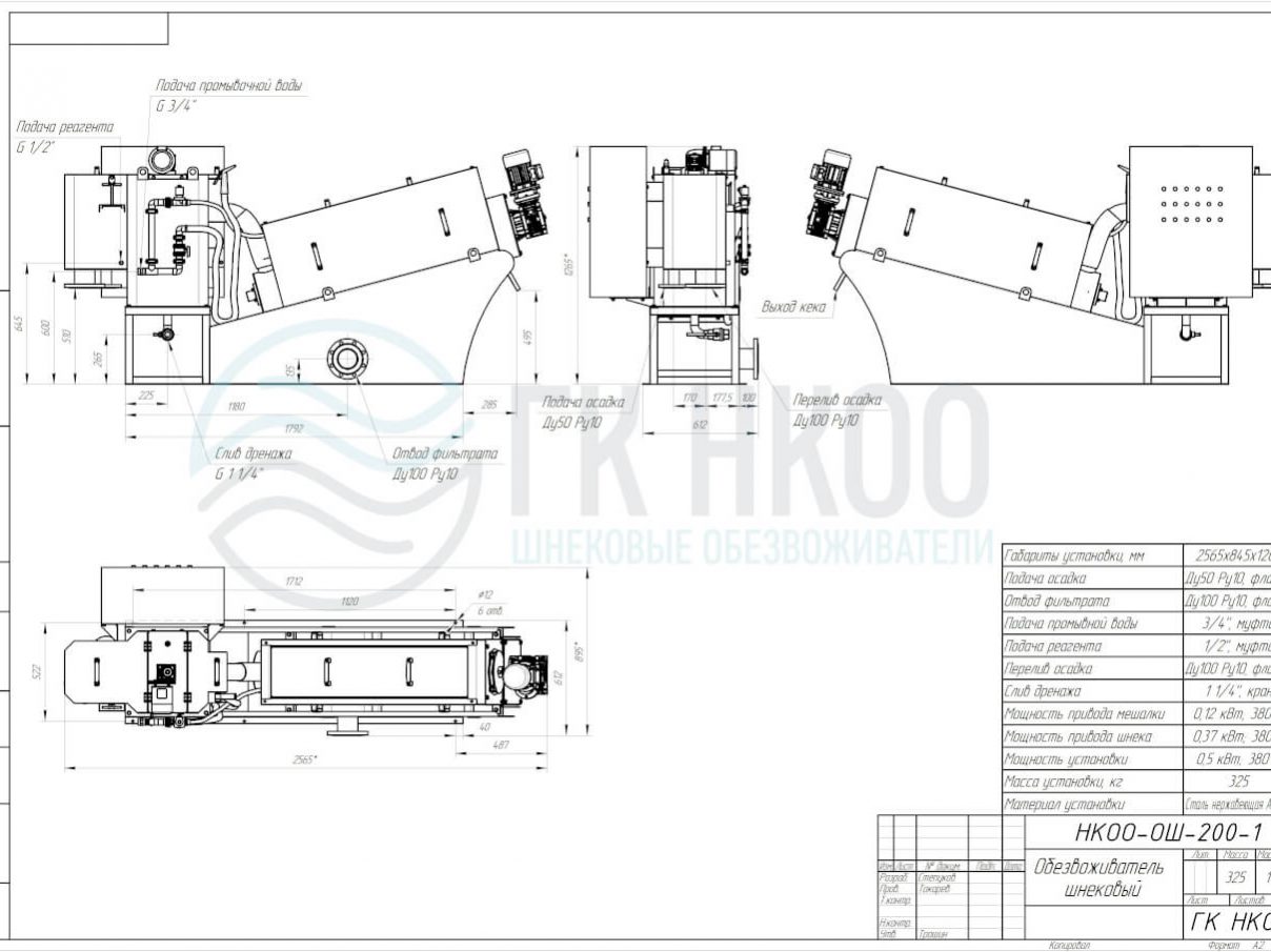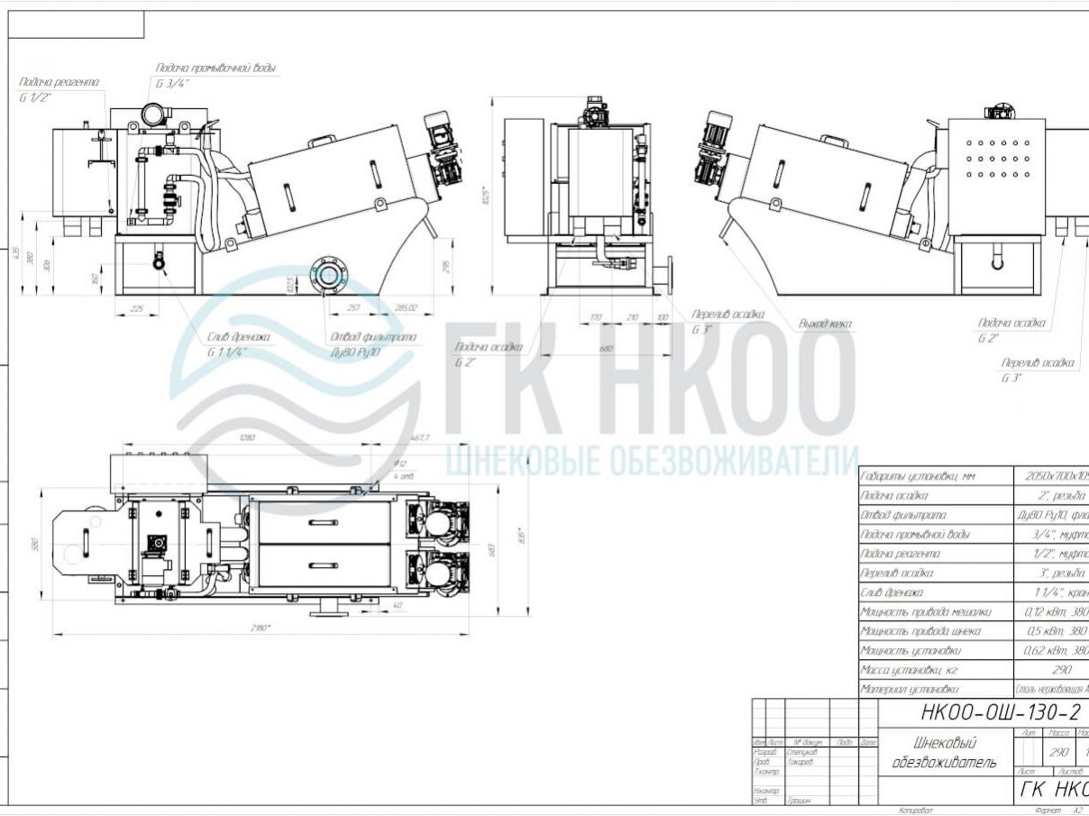 Шнековый обезвоживатель НКОО-ОШ предназначен для обезвоживания любых видов осадков, образовавшихся в процессе очистки сточных вод – хозяйственно-бытовых, промышленных, сельскохозяйственных и др.