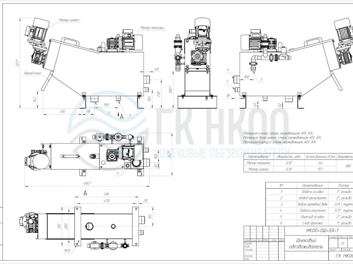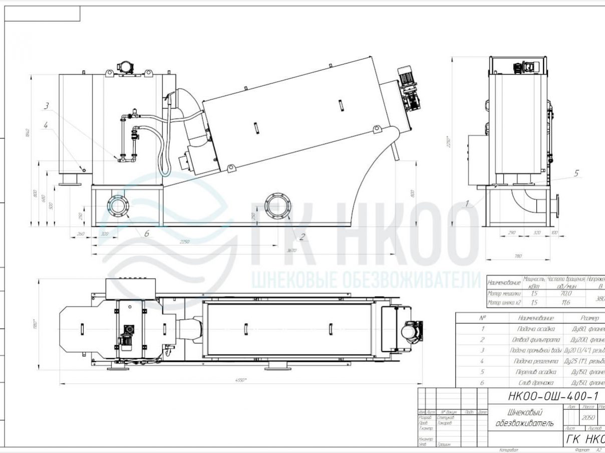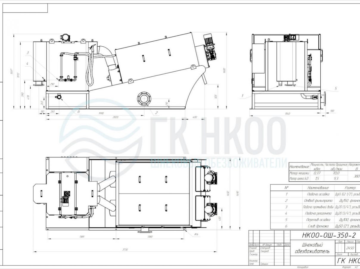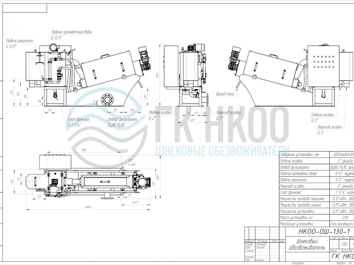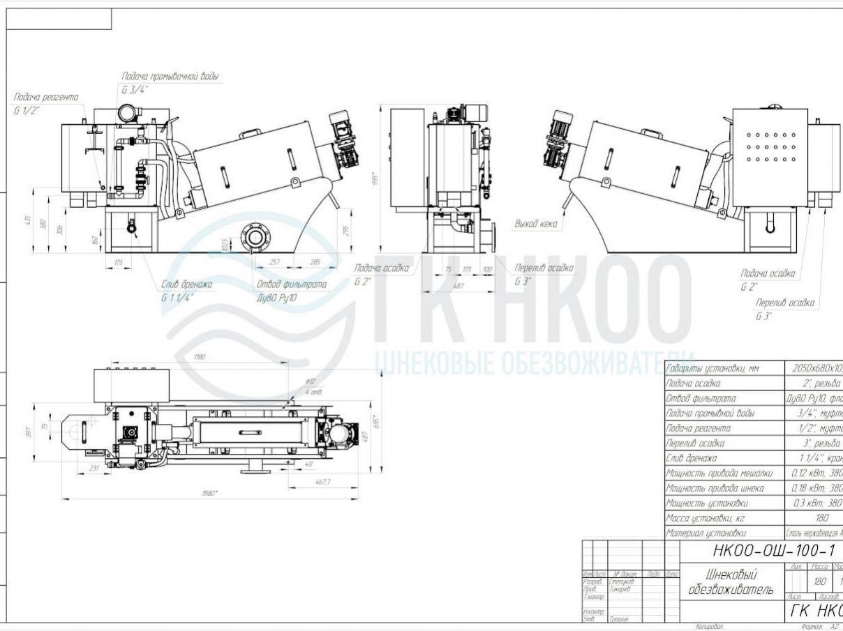 Шнековый обезвоживатель НКОО-ОШ предназначен для обезвоживания любых видов осадков, образовавшихся в процессе очистки сточных вод – хозяйственно-бытовых, промышленных, сельскохозяйственных и др.